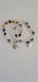 Elastic multi coloured heart bracelet with Miraculous medal & Crucifix.