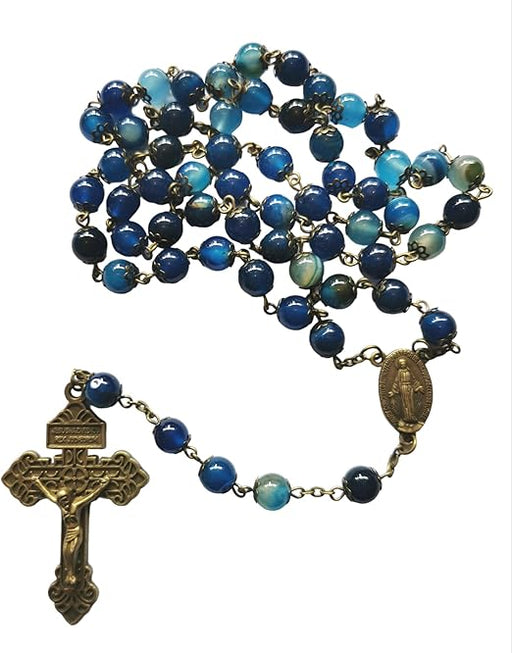 St. Rita's ShopOriginal price £8.99 - Original price £8.99Original price£8.99£8.99 - £8.99Current price £8.99| /22 in stockBlue stone striped agate rosary beads Bronze colour chain, centre junction and crucifix. 8mm beads The circumference of the necklace part of this ...