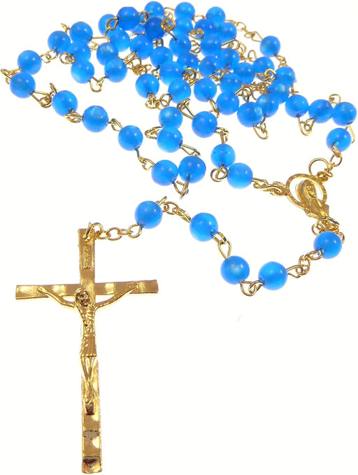 St. Rita's ShopOriginal price £2.99 - Original price £2.99Original price£2.99£2.99 - £2.99Current price £2.99| /19 in stock44cm hanging from the top of the rosary to the bottom of the cross Round glass blue rosary beads Gold metal chain and cross Looped circumference ...