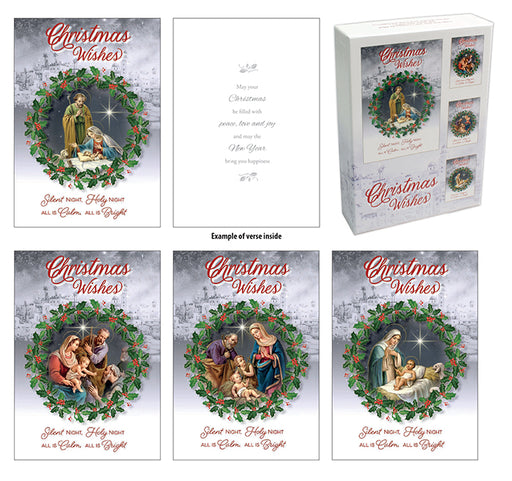 CBCOriginal price £3.99 - Original price £3.99Original price£3.99£3.99 - £3.99Current price £3.99| /20 in stockChristmas Box - Silent Night Boxed 12s/4 Designs Gold Stamping/Embossing Card Size: 11.5cm x 17cm Inside Text: May the Blessings of Christmas be wi...