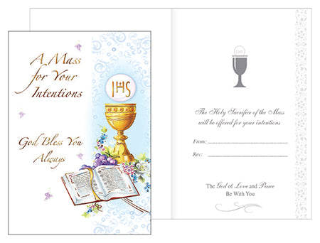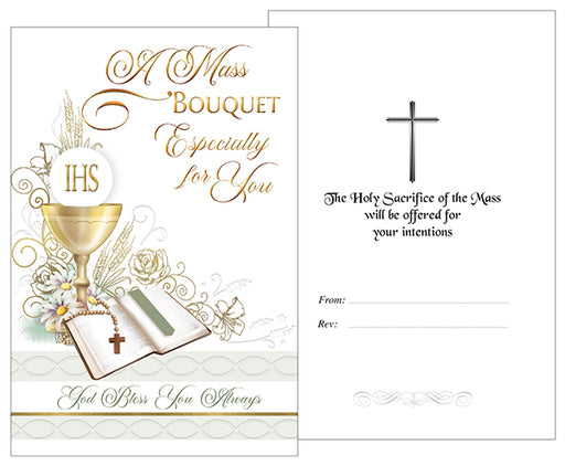 CBCOriginal price £1.25 - Original price £1.25Original price£1.25£1.25 - £1.25Current price £1.25| /10 in stockSize: 11.5 cm x 17 cmGold Foil EmbossedCello Wrapped Inside text:The Holy Sacrifice of the Mass will be offered for your intentionsFrom: __________...