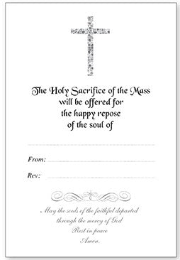 CBCOriginal price $3.00 - Original price $3.00Original price$3.00$3.00 - $3.00Current price $3.00| /34 in stockAssorted designs Size: 10.5 cm x 15 cmDouble-fold Inside text:The Holy Sacrifice of the Mass will be offered for the repose of the soul ofRev: ____...